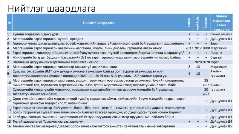 Мэргэшлийн зэргийн шалгалтанд оролцогчдод тавигдах нийтлэг шаардлага: